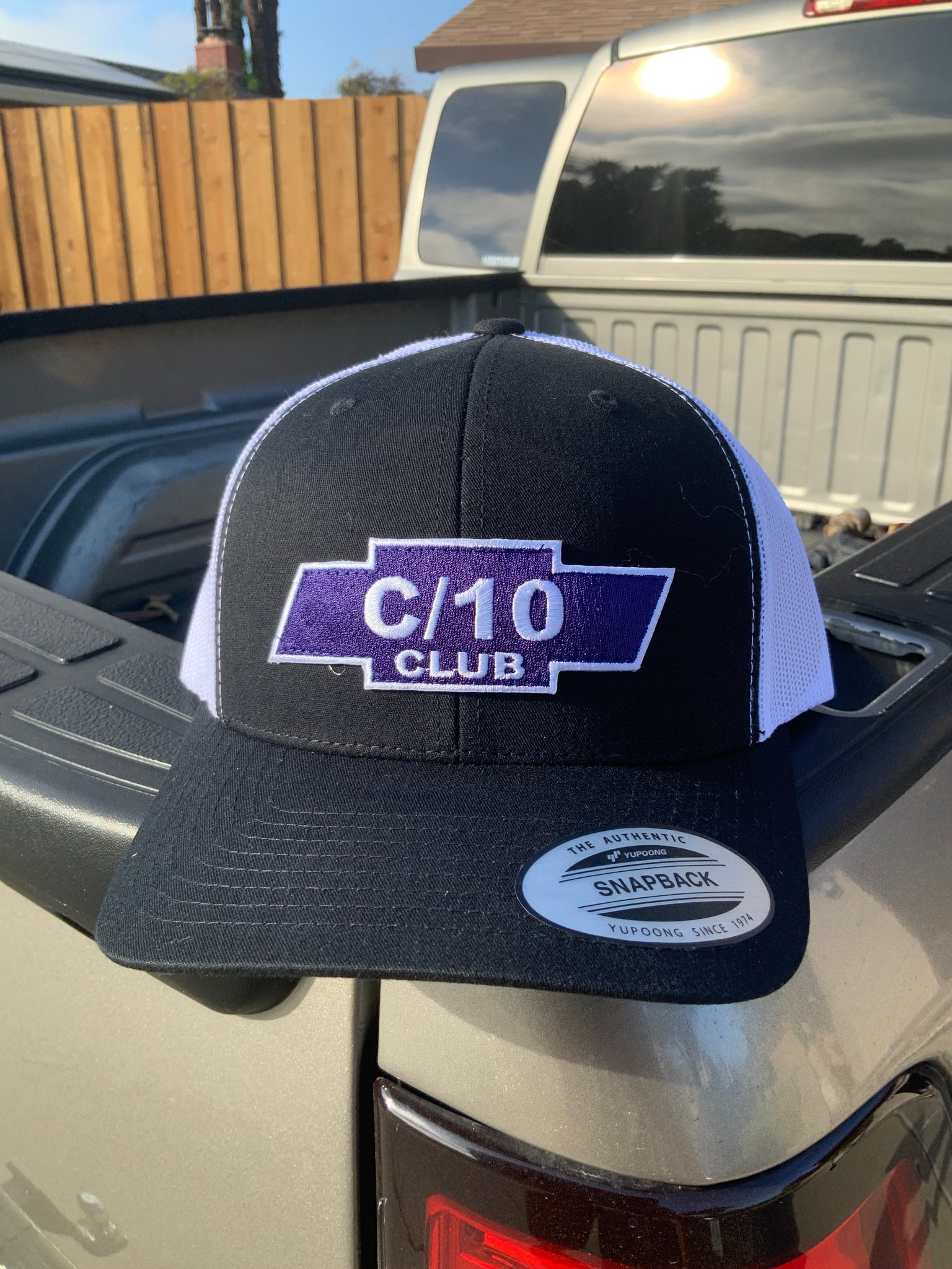The OG Trucker Hat features a mesh back with a curved bill and adorns the original Red/White C10 Club logo embroidered on the front of the hat. SnapBack